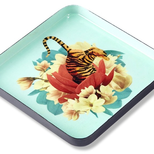 Gangzai est un éditeur français d’objets de décoration. Ce plateau au visuel étonnant provient de la collection Curiosito de Gangzai. On aime son originalité et ses sublimes combinaisons de couleurs . Un cadeau chic et original à prix accessible.
