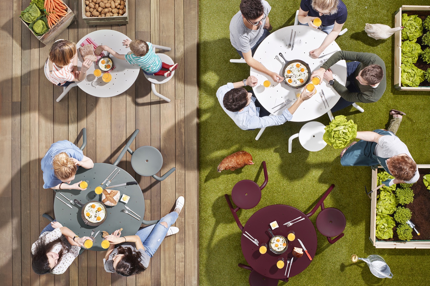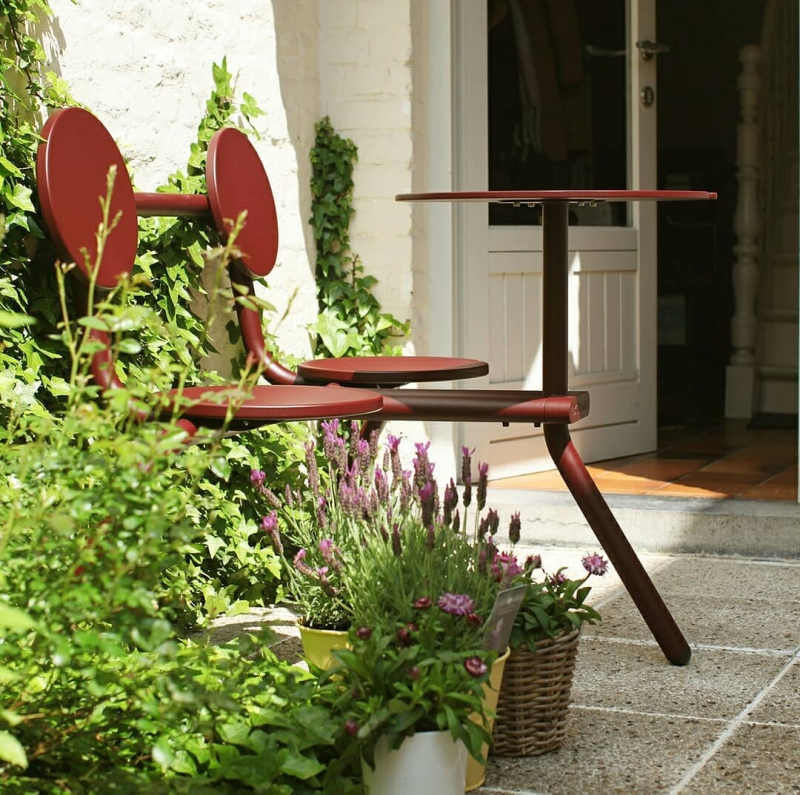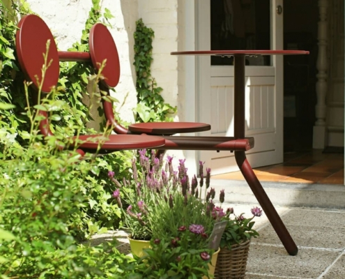 La marque belge de design Extremis ne parle pas de mobilier d’extérieur, mais de « Tools for Togetherness ». C’est en 1994 que le succès sourit à son fondateur Dirk Wynants, lorsqu’il réalise dans son garage une table ronde et quatre bancs réglables séparément en hauteur. Un concept ingénieux qui est devenu un best-seller sous le nom de Gargantua.