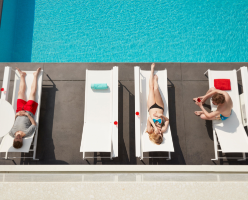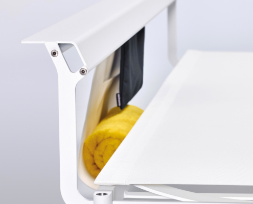 Le Sol + Luna possède un dossier qui peut également servir d’étagère étroite, pratique pour boire un verre ou accrocher une serviette. Lorsqu’elle est utilisée comme chaise longue, l’extrémité peut être réglée à plusieurs angles de manière à ce que vous puissiez vous asseoir plus ou moins droit. En outre, le mobilier est équipé de points d’attache aux pieds où divers accessoires spécialement conçus peuvent être ancrés. Par exemple, des parasols élégants sont disponibles (avec ou sans éclairage intégré) et des tables d’appoint en plusieurs tailles. Il est également possible de commander différents coussins pour augmenter le confort, et des roulettes assorties pour faciliter le déplacement des meubles. Une couverture supplémentaire peut être commandée, permettant aux meubles de rester dehors toute l’année. Il est possible d’installer deux meubles Sol + Luna empilés sous une même couverture.