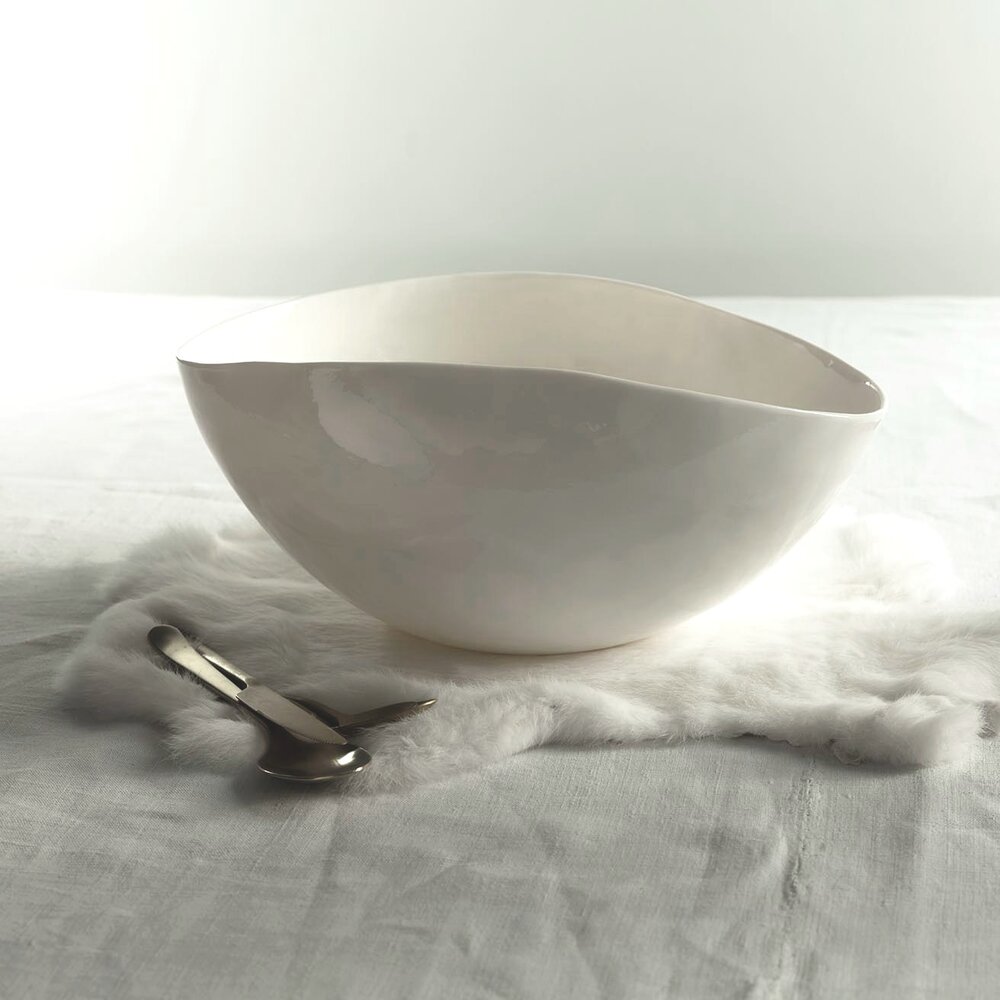 Grands saladiers façonnés à la main. Leur forme varie d’un saladier à l’autre. Ils sont émaillés à l’estérieur et l’intérieur.