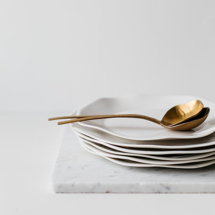 L’assiette plate empreinte est en porcelaine blanc cassé et douce au touché. Elle est à la fois fine et solide. La table dressée avec le service “Empreinte” devient vibrante et contemporaine.