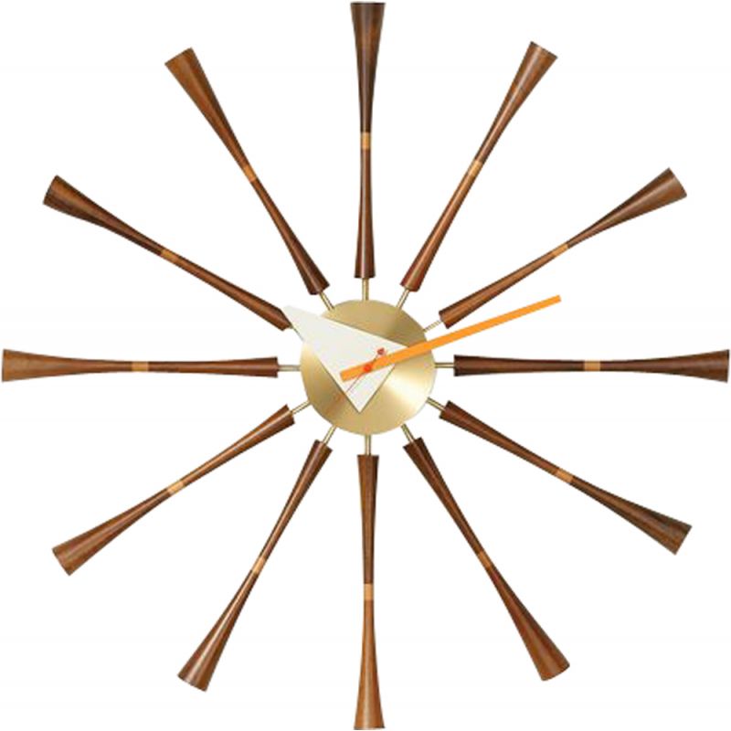 En 1947, le designer américain George Nelson a été chargé de créer une collection d’horloges. Nelson a analysé la façon dont les gens utilisaient les horloges et a conclu qu’ils lisaient l’heure en discernant la position relative des aiguilles, l’utilisation de chiffres étant donc inutile. De plus, comme la plupart des gens portaient des montres-bracelets, il a supposé que les horloges étaient plutôt devenues des éléments décoratifs pour les intérieurs.