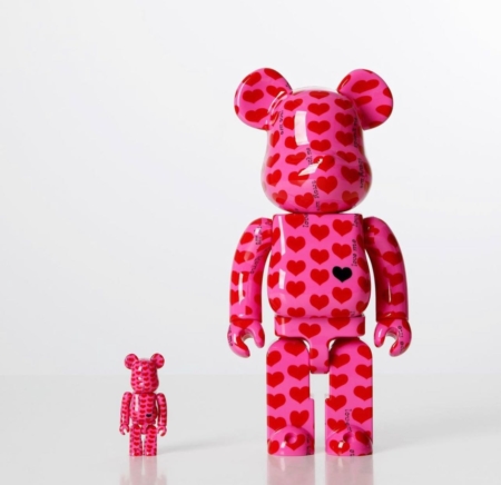 Medicom Toy est visiblement fan de ladite chanson puisqu’aujourd’hui voici un set 400% + 100% Bearbrick tout de rose vêtu et avec des cœurs absolument partout.