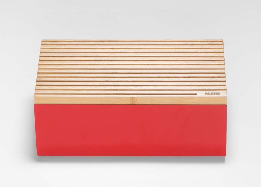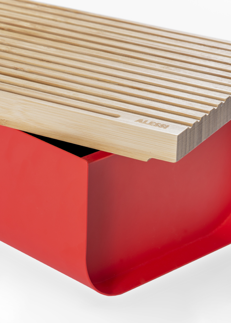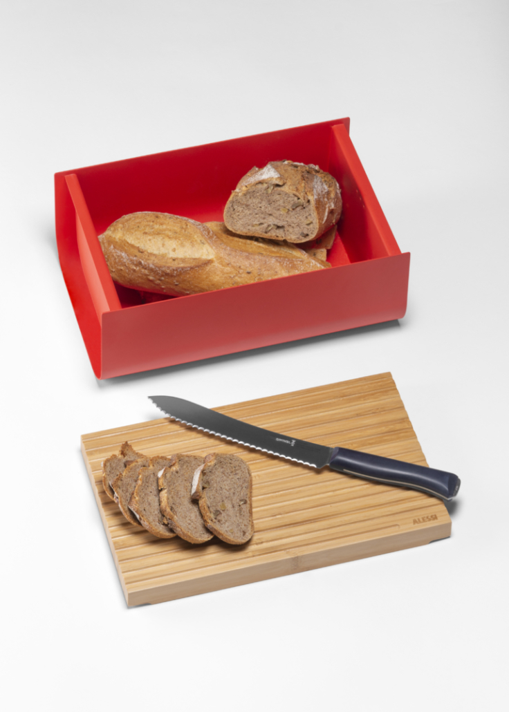 Le cabinet de design Big-Game propose un objet multifonction conçu pour accompagner un geste quotidien, la consommation du pain, en mettant en valeur sa nature rituelle et conviviale. Mattina ne sert pas uniquement à poser le pain : c’est un contenant ayant pour couvercle une planche à pain conçue pour couper des tranches au mieux, sans que les miettes ne tombent sur le plan de travail. Un objet polyvalent qui peut être utilisé également pour apporter le petit déjeuner sur la table.