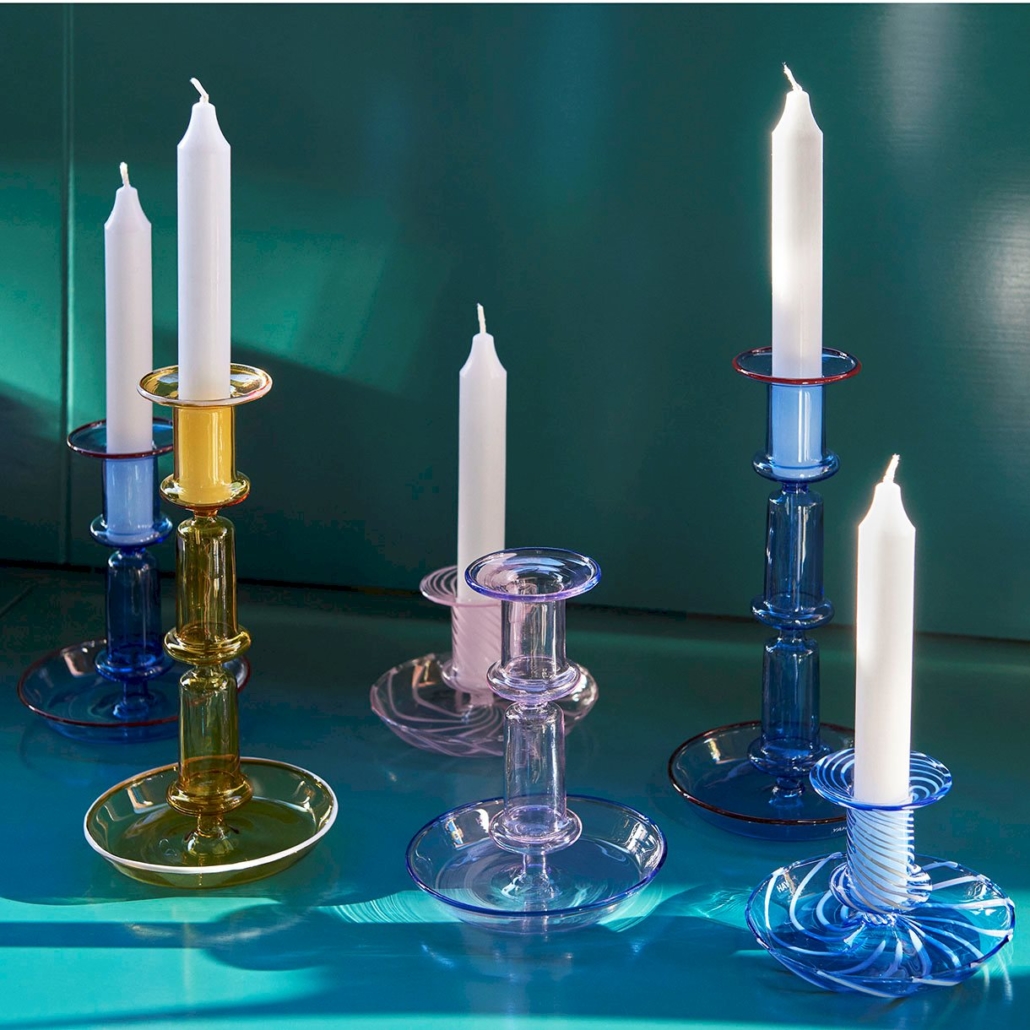 Le verre borosilicate coloré crée une manière élégante et distincte de présenter les bougies dans le bougeoir Flare de HAY. Disponible avec un bord contrasté ou teinté dans la masse ou un motif en spirale dans un choix de couleurs. Idéal pour présenter les bougies HAY sur le rebord d’une fenêtre ou sur une table afin de créer une ambiance dans la maison.
