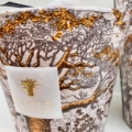 Le décor de la bougie parfumée Dualla est dans ses tonalités probablement le plus africain de toute la collection Sacred Trees Summer. Un baobab orange soleil se dresse sur un fond gris tel un gardien imaginaire surplombant la savane. Un paysage luxuriant où les arbres fleurissent et la faune est en émoi. Ce décor est réalisé par sublimation par des artisans italiens.