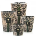 Sur le verre de la bougie parfumée Woroba, un grand baobab brun sur fond rose s’élève au milieu d’une savane rappelant la délicatesse de tissus anciens. Le dessin sur le verre est réalisé en Italie grâce à l’expertise de la sublimation. À travers le décor, on peut voir la flamme et celui-ci s’anime comme une lampe donnant vie à la bougie.