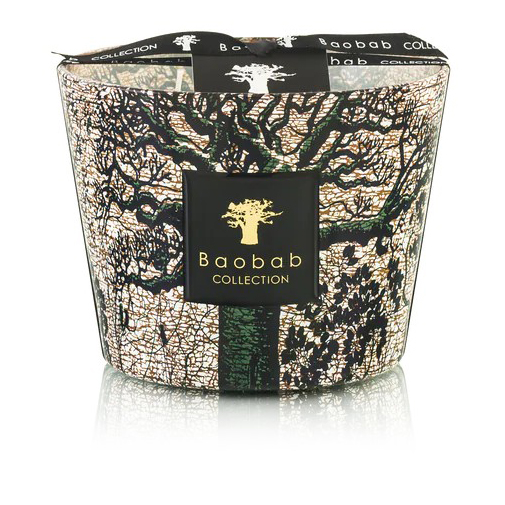Sur le verre de la bougie parfumée Woroba, un grand baobab brun sur fond rose s’élève au milieu d’une savane rappelant la délicatesse de tissus anciens. Le dessin sur le verre est réalisé en Italie grâce à l’expertise de la sublimation. À travers le décor, on peut voir la flamme et celui-ci s’anime comme une lampe donnant vie à la bougie.