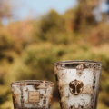 Le décor sérigraphié d’or et de noir est inspiré de gravures du XIXème siècle, où petits papillons et montgolfières se placent sur le verre dans un vol imaginaire vous emportant de manière subliminale dans l’univers fantasmagorique de Tomorrowland.