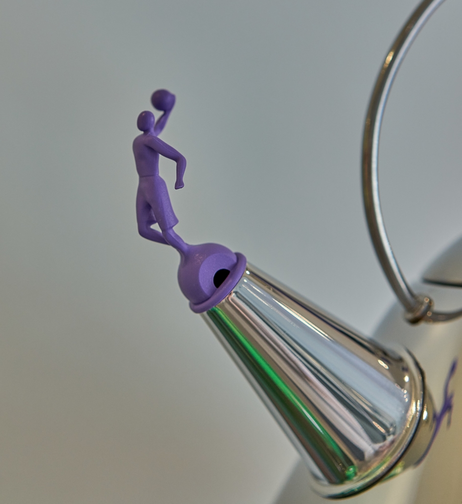 Bouilloire de Michael Graves (projet de 1986) relookée par l’artiste américain Virgil Abloh (1980 – 2021) – Édition limitée ( 9 999 pièces) – Icône du design – Tous feux dont induction – Bouchon-sifflet en forme de basketteur