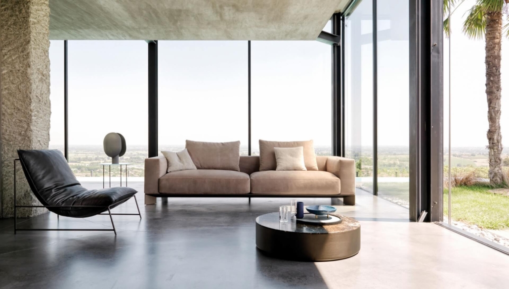Lignes épurées et vaste modularité. Easton est un système se constituant de multiples éléments qui offrent une très grande liberté dans l’agencement des différents canapés.