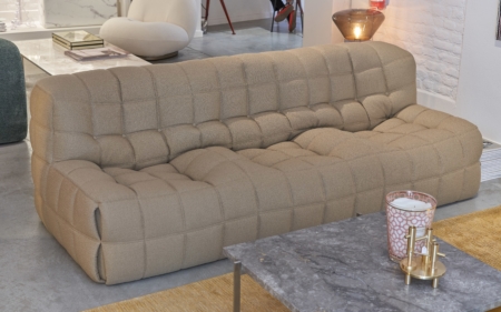 En 2023 Ligne Roset réédite son modèle emblématique Kashima. C’est le »Chesterfield confortable ». Kashima de Michel Ducaroy offre à la clientèle classique un confort »à l’anglaise ». Les formes généreuses de ce modèle permettent de donner une image rassurante à un siège tout mousse. Siège tout-mousse véritable, Kashima cache, sous son apparence accorte, un confort moelleux en arrondis et en galbes (accoudoirs, cale-reins, appui-tête intégrés). Cependant ce confort ne doit rien à une concession sur la qualité des mousses de fortes densités qui la composent. Rappelons ici que la densité d’une mousse est la seule garantie de longévité. Plus les mousses sont de densités fortes et plus le siège durera. Le capitonnage est ensuite réalisé à l’aide de tirants invisibles, disposés à l’intérieur de la mousse. Le classicisme de ses formes ne prive pas Kashima d’une pointe de fantaisie. La couverture entièrement matelassée, recouvrant le siège, forme aux angles des coutures »pincées », renforcées par lacettes intérieures. La forme en NID de l’assise, permet à l’utilisateur de s’assoir, en se calant sur les côtés. STRUCTURE Entièrement constituée de mousse de 2 densités différentes : polyéther 21kg/m3 – 3.2kPa et polyéther 28kg/m3 – 4.8kPa. Parementage de ouate polyester 480g/m. CONFORT L’assise et le dossier sont constitués identiquement de mousses polyuréthane haute résilience Bultex (36 kg/m3 – 3,6 kPa) et (26 kg/m3 – 1.4 kPa). Parementage de mousse hyper souple 45kg/m3 – 1.8kPa. COUTURES / HOUSSES Surpiqûre double-aiguille pour l’ensemble des coutures plus capitonnages. La housse est matelassée de ouate 480g/m2. Déhoussable par un professionnel.