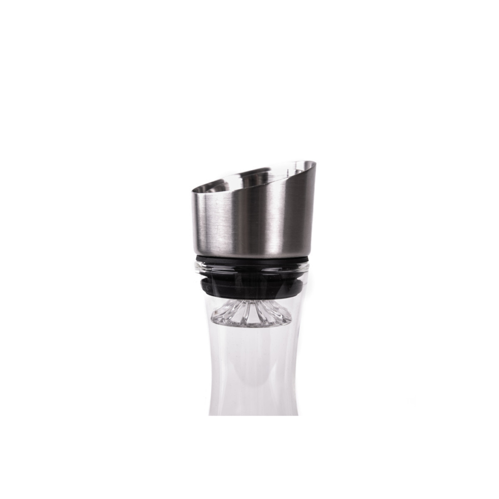 Pour vous proposer une dégustation au sommet, nous avons équipé cette carafe d’un bouchon 3 en 1 qui intègre un filtre, un aérateur et un bec verseur.
