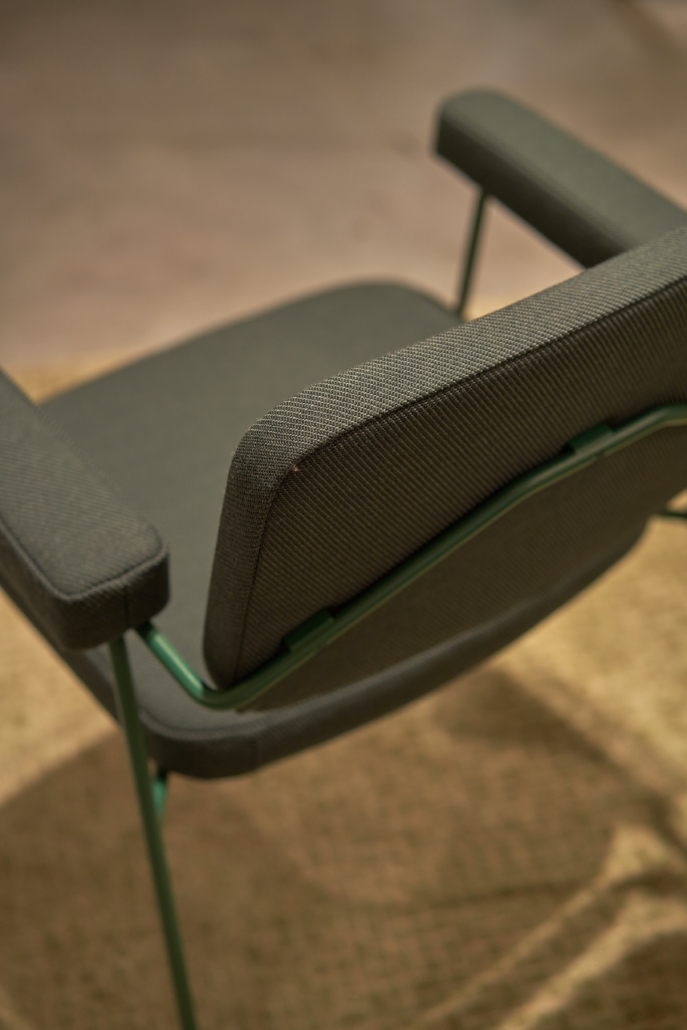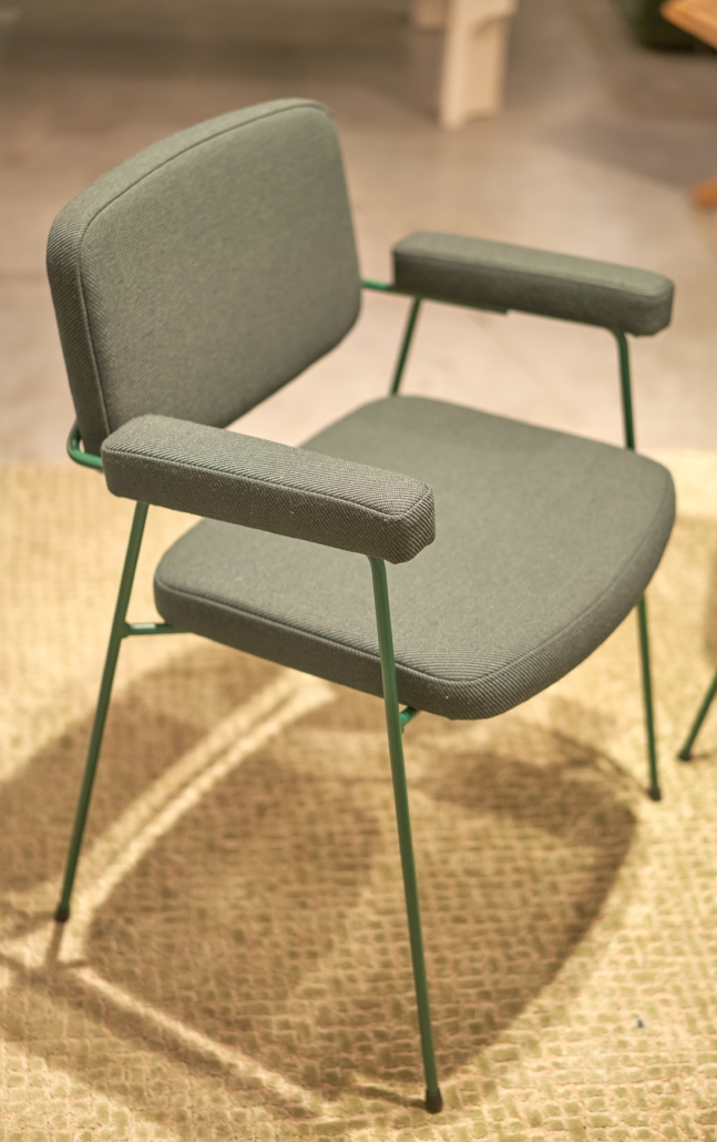 Datant des premières années de Pierre Paulin, le modèle Moulin a vu le jour dans la Rue Jean Moulin. Création au design sobre, elle allie un châssis élancé à une assise et un dossier garnis. La simplicité même, sans aucune fioriture.
