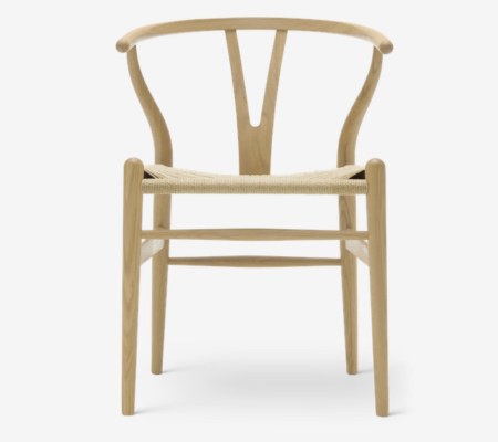 La chaise CH24 Wishbone est considérée comme le meuble le plus influent et le plus emblématique de Hans J. Wegner. Conçue en 1949, la chaise est devenue connue sous le nom de « Wishbone » grâce à son dossier en forme de Y qui non seulement soutient le dossier mais est également confortable. La chaise Wishbone est imprégnée du talent créatif de Wegner et représente l’âme durable du design danois.