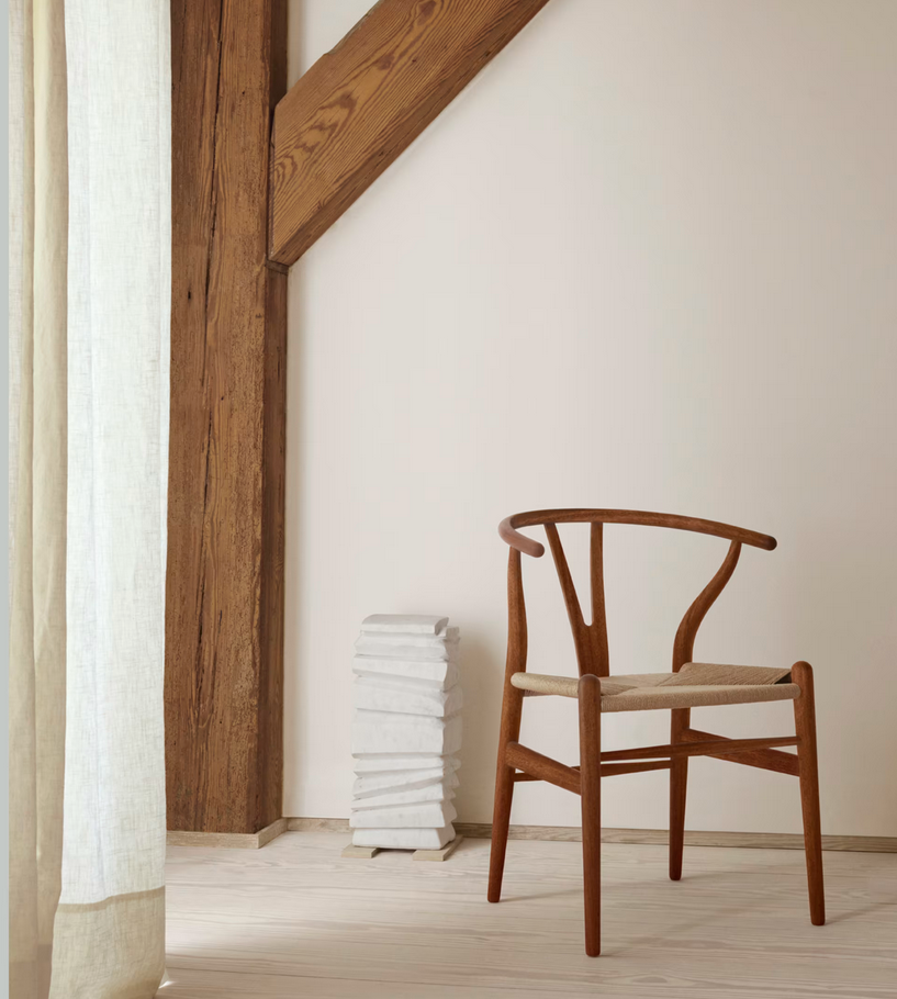 La chaise CH24 Wishbone est considérée comme le meuble le plus influent et le plus emblématique de Hans J. Wegner. Conçue en 1949, la chaise est devenue connue sous le nom de « Wishbone » grâce à son dossier en forme de Y qui non seulement soutient le dossier mais est également confortable. La chaise Wishbone est imprégnée du talent créatif de Wegner et représente l’âme durable du design danois.