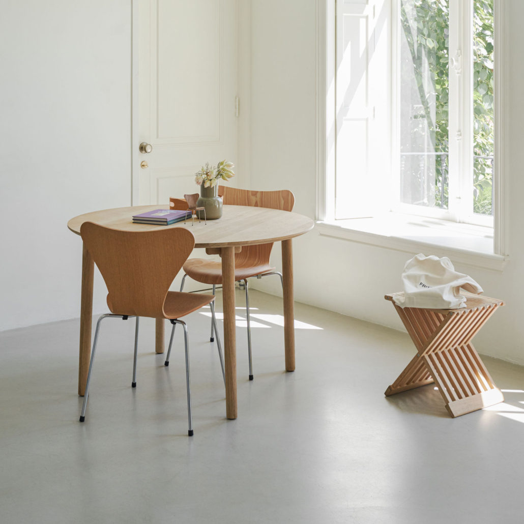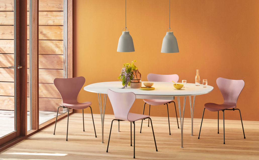 La chaise Série 7 3107 de Fritz Hansen est l’une des créations les plus célèbres d’Arne Jacobsen, inspirée de sa chaise Ant emblématique. La silhouette distinctive et iconique du modèle 3107 en fait une chaise polyvalente qui trouvera parfaitement sa place dans une salle à manger, un bureau ou comme siège d’appoint dans le salon.
