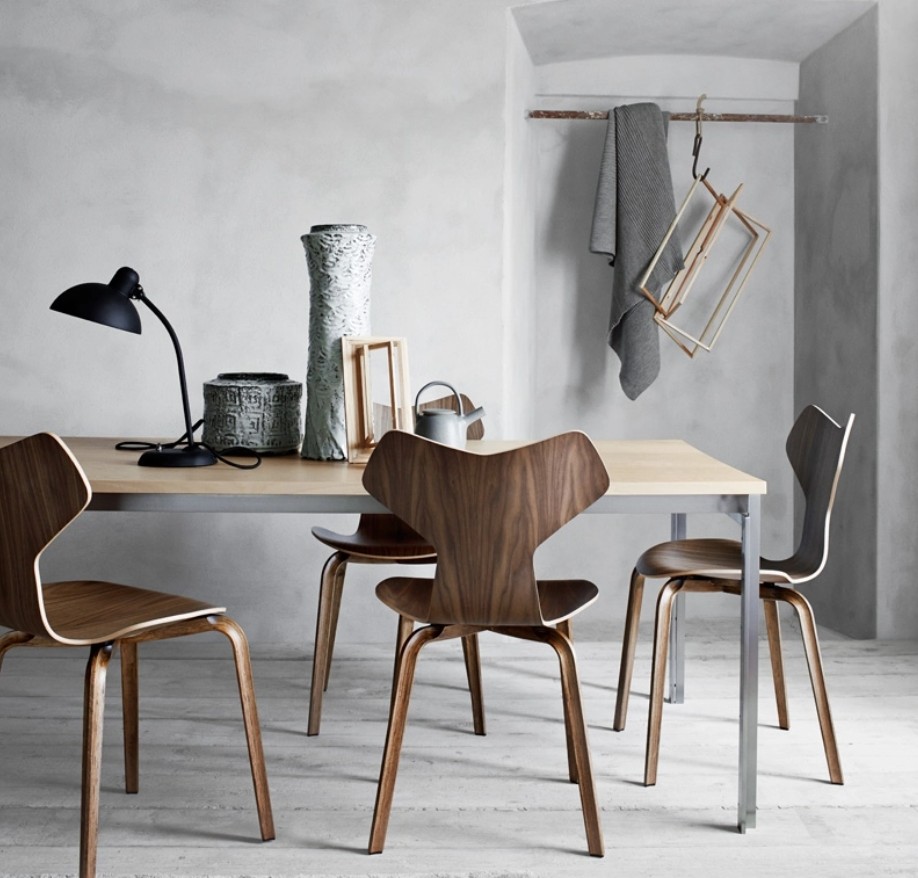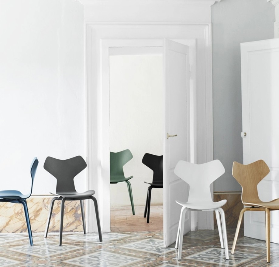 Dessinée par Arne Jacobsen, la chaise Grand Prix fut présentée par Fritz Hansen à l’exposition du printemps des designers au musée d’Art et de Design de Copenhague en 1957. Plus tard dans l’année, cette chaise reçut le Grand Prix de la Triennale de Milan. Après avoir été produite avec un piètement en tube d’acier comme la Serie 7, la chaise Grand Prix est désormais de nouveau disponible avec un piètement bois, comme elle avait été présentée à l’origine. Cette pièce intemporelle s’intègre dans tous les styles d’intérieurs et les différentes finitions disponibles se marient très bien entre elles pour créer des compositions harmonieuses autour de la table.