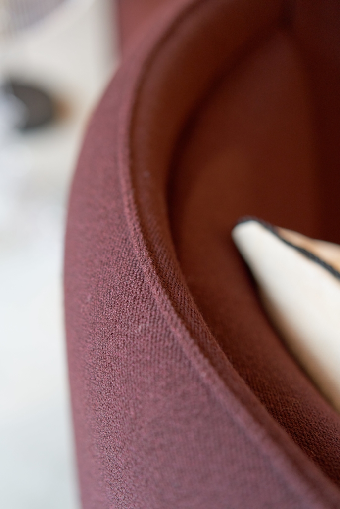 La mission du Mobilier National est double : meubler les bâtiments officiels et incarner le symbole d’un design français à la pointe de l’innovation. Pierre Paulin participe à ce projet dès 1971 avec l’Elysée et le Pumpkin. Philippe Nigro prend la relève en 2020 avec l’Hémicycle de Ligne Roset. Si le terme d’Hémicycle peut évoquer l’Assemblée Nationale, il a également été choisi pour sa signification toute autre de forme géométrique. L’usage de cette assise doit aussi bien convenir à des institutions, des lieux publics ou des habitations plus traditionnelles. Elle constitue un lieu d’accueil de style classique pouvant voyager entre les plus hautes sphères du pouvoir et l’intimité d’un appartement contemporain. STRUCTURE : Pour le dossier deux cadres mécano-soudés reliés. Accoudoirs et structure dos en tubes soudés, parementés de mousse haute résilience Bultex (50 kg/m3 – 6.3 kPa) et de ouate polyester 110g/m². Pour l’assise, structure réalisée en panneaux de multiplis. Pieds métalliques laqués noir mât. CONFORT : suspension d’assise par blocs de ressorts biconiques en fil d’acier reliés entre eux. L’assise est constituée de mousses polyuréthane haute résilience Bultex (38 kg/m3 – 3.6 kPa) et (36 kg/m3 – 2.8 kPa). Parementage ouate polyester 100g/m². Suspension dossier maille d’acier. Couche de contact des dossiers en mousse Bultex (26 kg/m3 – 1,4 kPa). COUTURE/HOUSSE : surpiqûre bourrelet 3 mm sur le pourtour de la structure accoudoir/dossier, et surpiqûre baguette 5 mm sur l’assise. Déhoussable par un professionnel. ATTENTION : Le coussin de dossier et la devanture de l’assise ont des coutures verticales. Seul le patron MAXI qui est tapissé en sens travers n’a pas de couture (ni à l’assise ni au dossier).