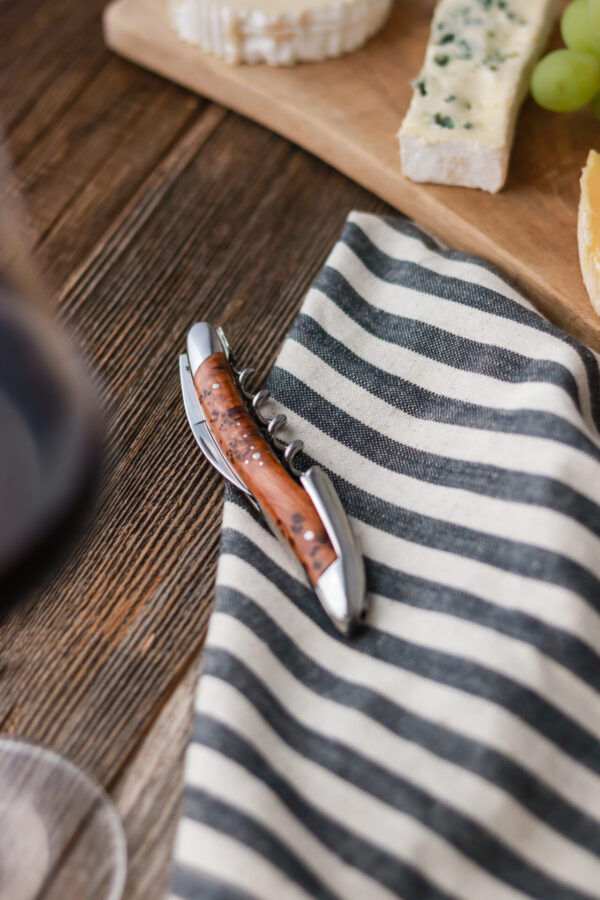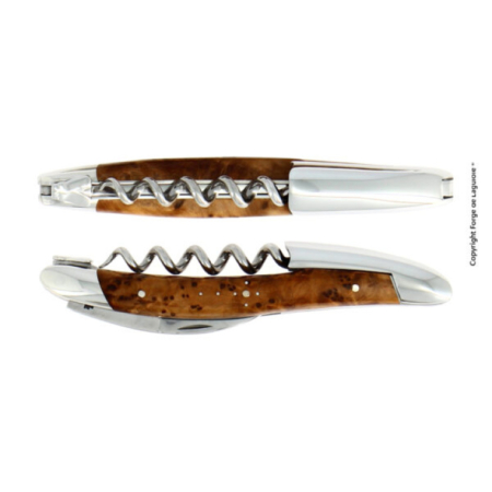Le tire-bouchon Sommelier Forge de Laguiole® est présenté avec un manche thuya et une finition brillante sur notre boutique en ligne. Il a été réalisé en collaboration avec des Sommeliers professionnels et lui confère ainsi son ergonomie, son élégance et son efficacité.