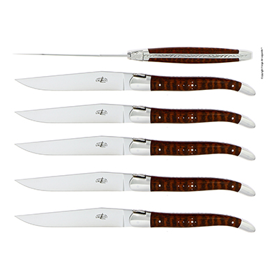 Sur ce modèle 11 cm en finition brillante dont la lame est gravée avec la signature de l’artiste, Seize propose 4 motifs différents qui sont les « noms d’étoiles dont la carte stellaire dessinée sur les couteaux indiquent le chemin pour les rejoindre »