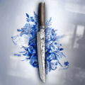Le manche du couteau anniversaire Tantō est fabriqué en bois de pakka brun veiné avec une finition ultra mate, ce qui le distingue des manches polis brillants des autres couteaux de la série TDM. Le bois de pakka est traité avec des résines sélectionnées, ce qui le rend extrêmement souple, résistant, imperméable et durable. Grâce à sa forme symétrique, le manche tient bien en main et convient aussi bien aux gauchers qu’aux droitiers, tandis que la soie traversante assure un équilibre optimal entre la lame et le manche lors de la coupe.