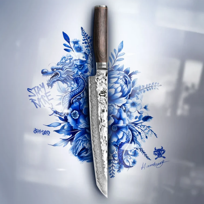 Grâce à sa forme symétrique, il convient à la fois aux gauchers et aux droitiers. Une soie sur toute la longueur assure stabilité et équilibre lors de la coupe. Détail particulier, l’extrémité du manche est gravée d’une tête de taureau Tim Mälzer, le signe distinctif du chef professionnel.