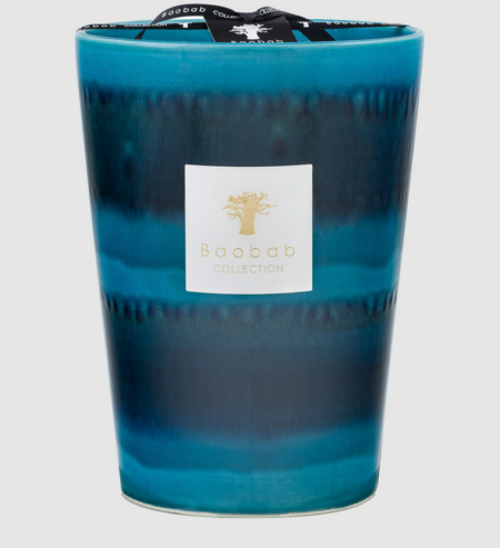 La bougie parfumée Oceanos est en céramique émaillée d’un bleu profond en accord avec le dieu grec des océans dont elle porte le nom. La céramique a été réalisée à base d’émaux réactifs qui forment dans la matière un effet craquelé et bicolore.