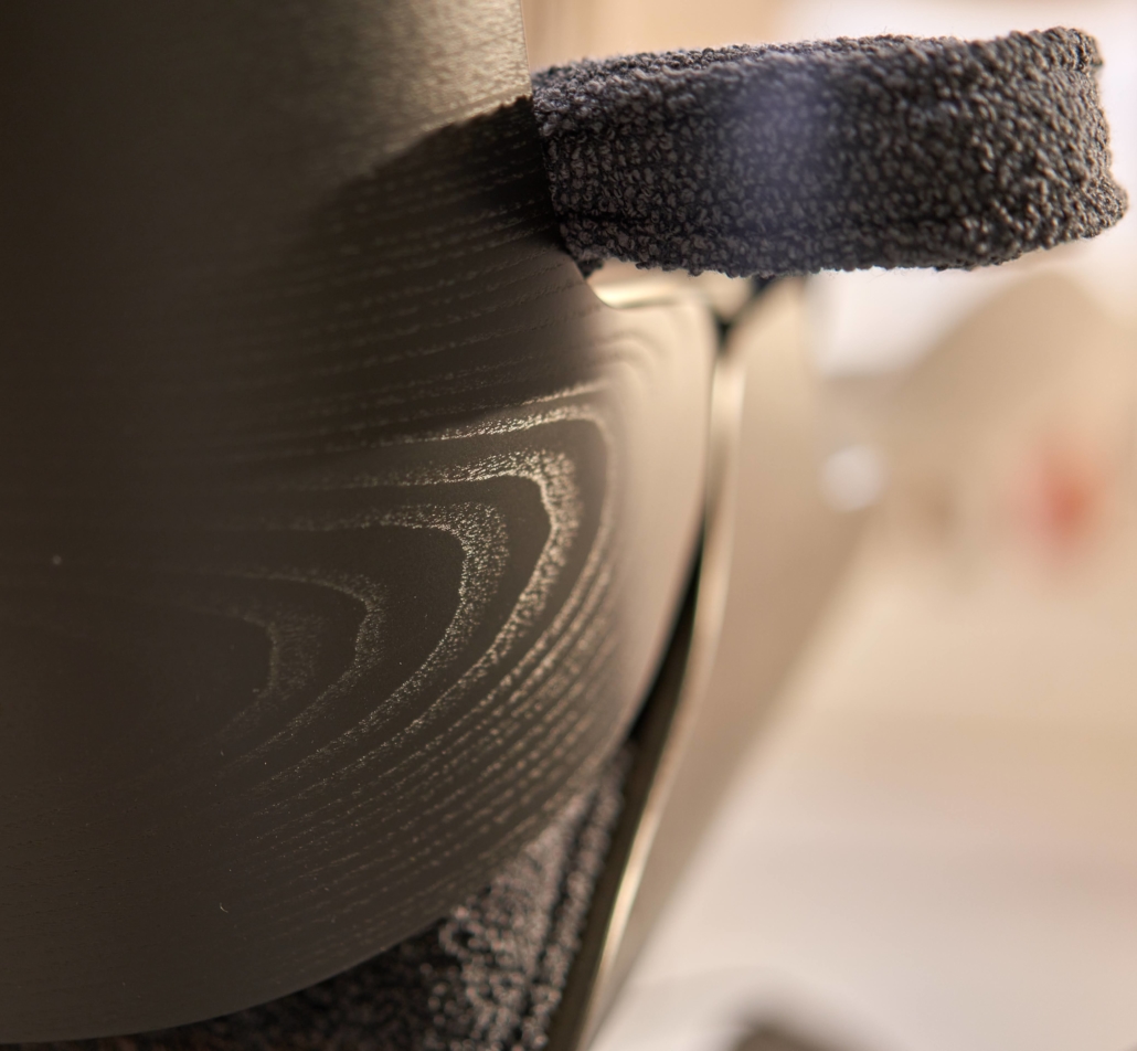 La chaise longue et l’ottoman Eames peuvent être assemblés en plusieurs versions. Vous pouvez choisir le type de bois, le revêtement et la couleur de la base. La coque du siège en bois est disponible en noyer pigmenté noir, en cerisier et en palissandre Santos. Différents types de cuir ont été sélectionnés pour le revêtement. Certaines variantes sont revêtues de cuir Premium dans les coloris Nero, Snow ou Chocolate. Il s’agit d’un cuir de vachette relativement lisse, au grain plat et légèrement brillant. Il est entièrement coloré avec des pigments clairs. Le cuir semi-aniline est doux au toucher. Il existe en outre une variante en cuir naturel noir. Ce cuir nappa en cuir brut aniline est un cuir très souple qui doit son aspect naturel caractéristique à la structure de son grain non traité. Ce matériau est poreux, respirant et chaud au toucher. À l’usage, le cuir acquiert une patine vivante et typique. Vous pouvez également opter pour une édition noire spéciale et une édition blanche. La Black Edition a une base noire, une coque de siège en frêne noir et un revêtement en cuir Black Premium Leather. L’édition White a une base en aluminium poli, une coque de siège en noyer pigmenté blanc et un revêtement en cuir Snow Premium Leather.