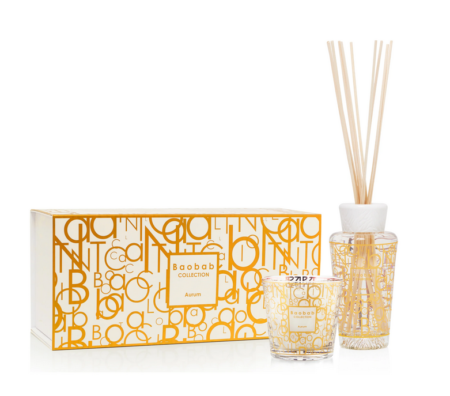 La bougie parfumée et le diffuseur de parfum Aurum sont l’un des parfums mythiques de Baobab Collection. Nous avons créé un monogramme inspiré des années 70 pour un relooking moderne et créatif très identitaire de notre marque.