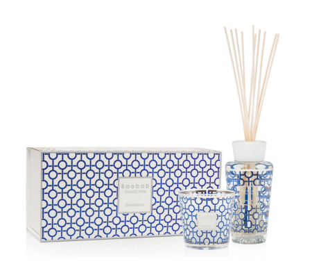 La bougie parfumée et le diffuseur de parfum Gentlemen sont réalisés dans un verre recouvert d’une sérigraphie platine et bleue marine. Son parfum de rhum, de safran et de labdanum est un vrai parfum masculin totalement irrésistible.