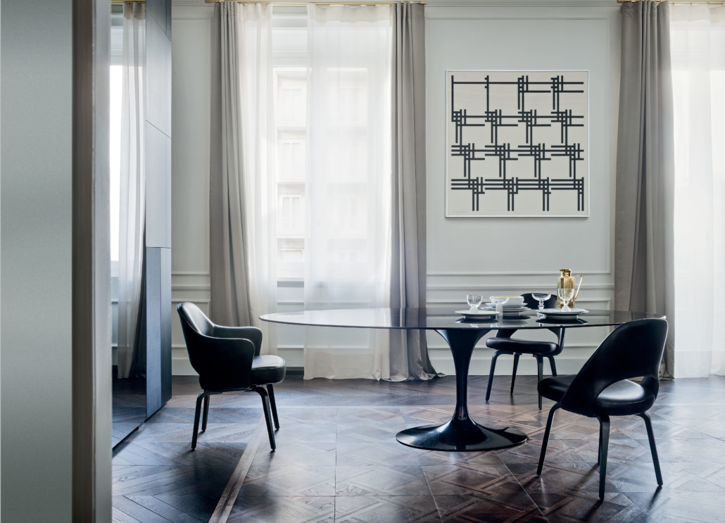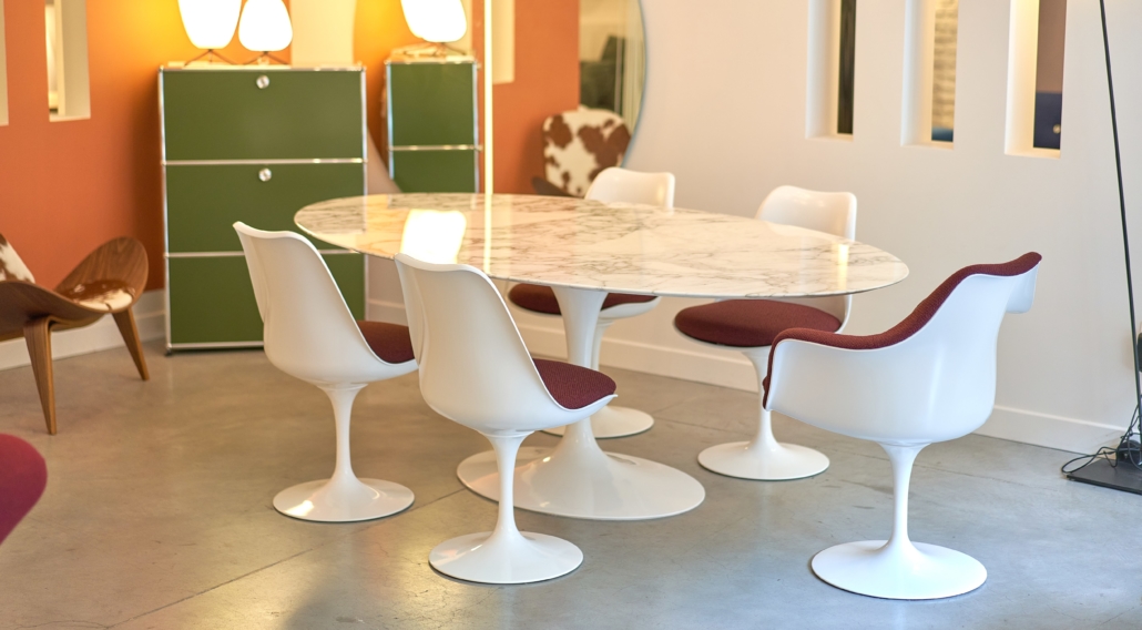 Eero Saarinen s’est juré de s’attaquer au « monde laid, confus et agité » qu’il observait sous les chaises et les tables – ce que l’on appelle le « taudis des pieds ». Une recherche de cinq ans sur le design l’a conduit à la révolutionnaire collection Pedestal, qui comprend ce qui est peut-être la table la plus reconnue de l’ère moderne.