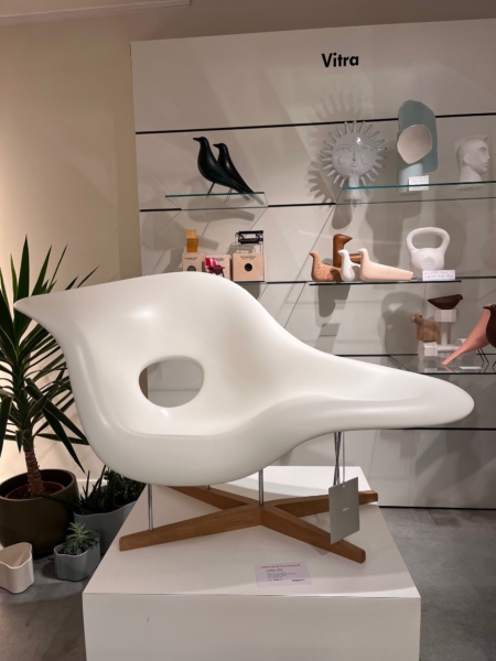 Charles et Ray Eames créèrent l’élégant fauteuil La Chaise dans le cadre d’un concours du Museum of Modern Art de New York en 1948, s’inspirant de la sculpture « Floating figure » de Gaston Lachaise. Le fauteuil est devenu depuis longtemps une icône du design organique.
