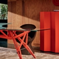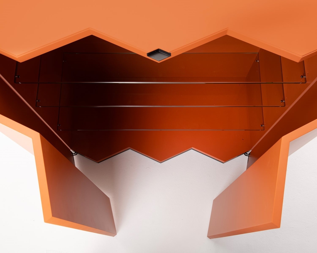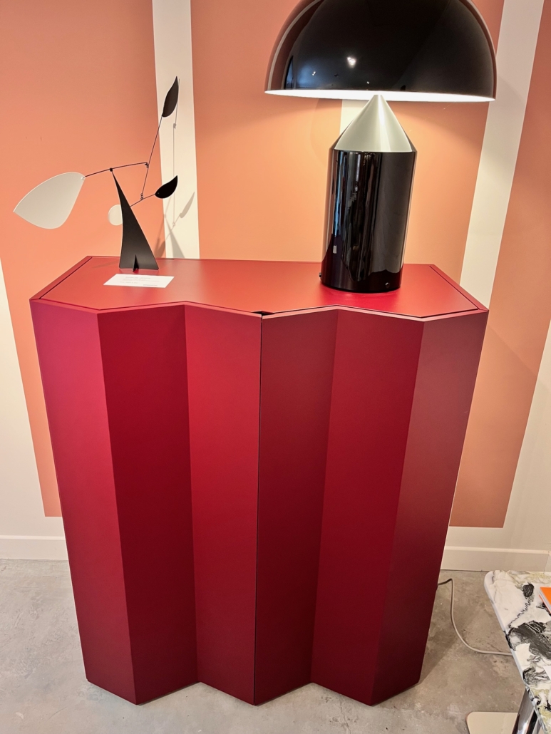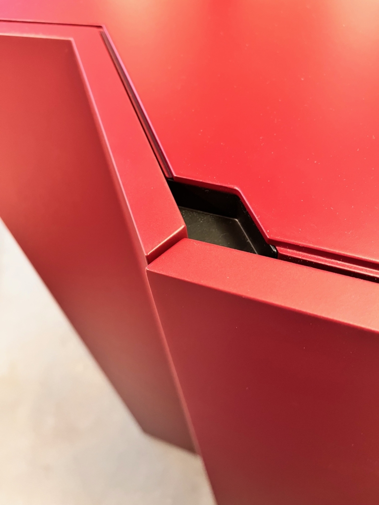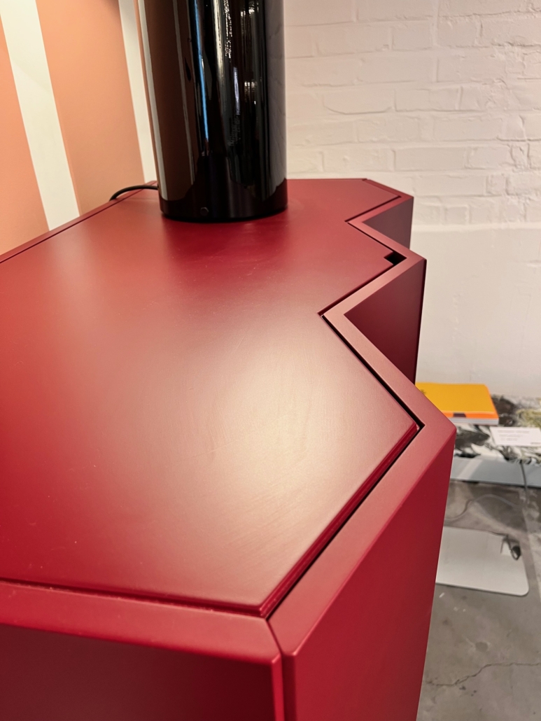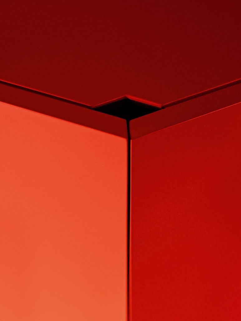 Finition : Structure en MDF et bois à lamélles, laquée mat COLORIS amarante