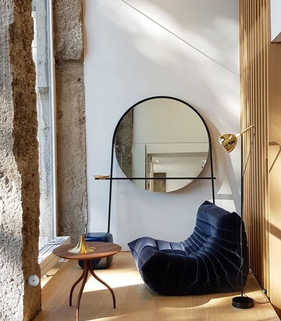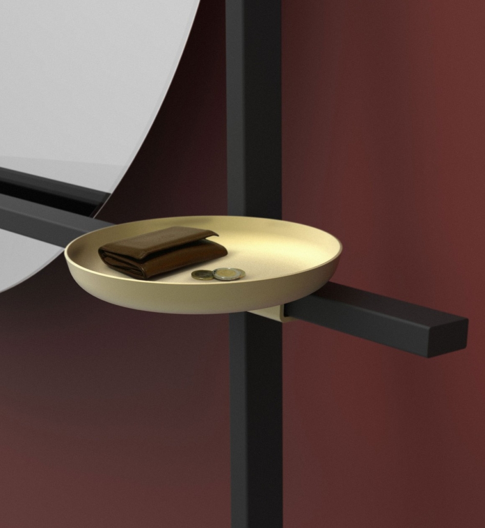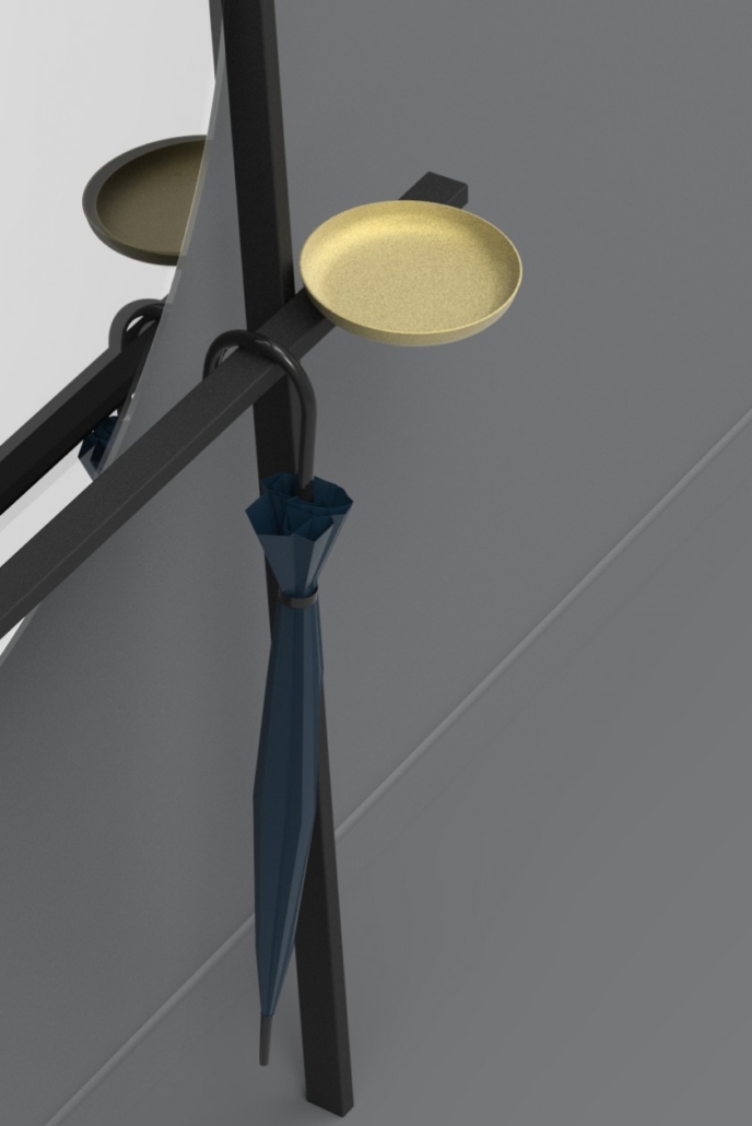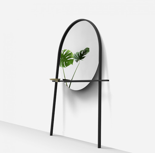 Geoffrey est un miroir-valet à la fois minimaliste par son dessin réduit à l’essentiel mais très spectaculaire par ses dimensions L 147,5 cm x H 192 cm ! Un miroir pour se voir, une coupelle pour déposer ses clés, une barre d’appui pour suspendre un foulard ou un parapluie : Geoffrey est un objet utile très graphique, à la fois stable et léger, à la présence spectaculaire tout en ouvrant l’espace, grâce à son grand miroir.