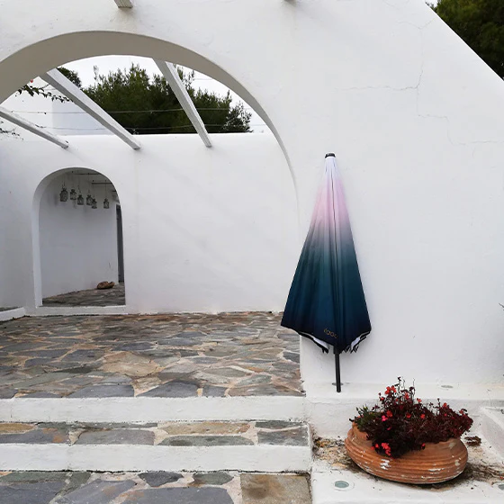 Vous êtes ici : Accueil1 / Shop2 / Objets3 / Bien être4 / Parasol de terrasse rosée bleu