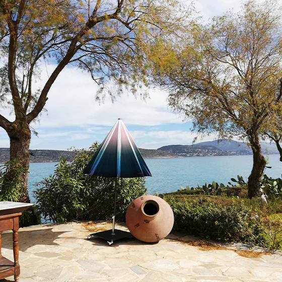 Le modèle Rosée est une déclinaison du travail autour des dégradés de couleur très chers à la maison Klaoos : PARASOL BLEU aux nuances de vert et de crème. Ce PARASOL DE JARDIN unique est l’allié parfait pour l’aménagement d’extérieur.