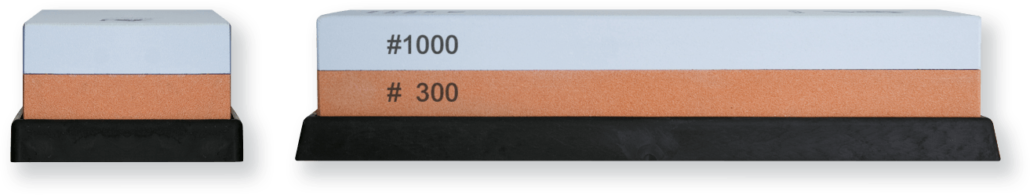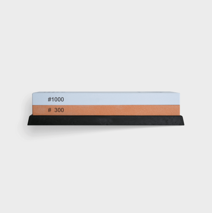 La face rouge au grain J300 permet de restaurer le tranchant de vos couteaux émoussés. La face bleue au grain J1000 rendra à vos couteaux un aiguisage comme neuf. Le support pour pierre en caoutchouc inclus empêche votre pierre de glisser lors de l’aiguisage. La hauteur de la pierre une fois posée sur le support, vous permet de travailler confortablement, sans toucher votre plan de travail.