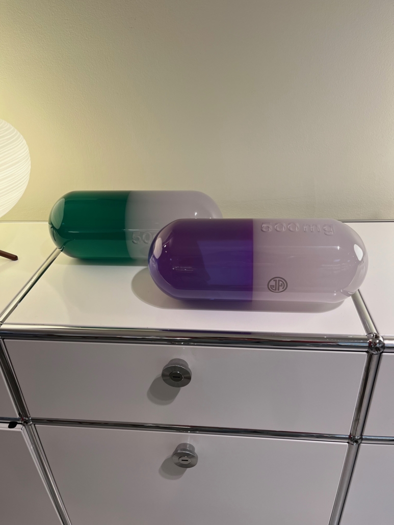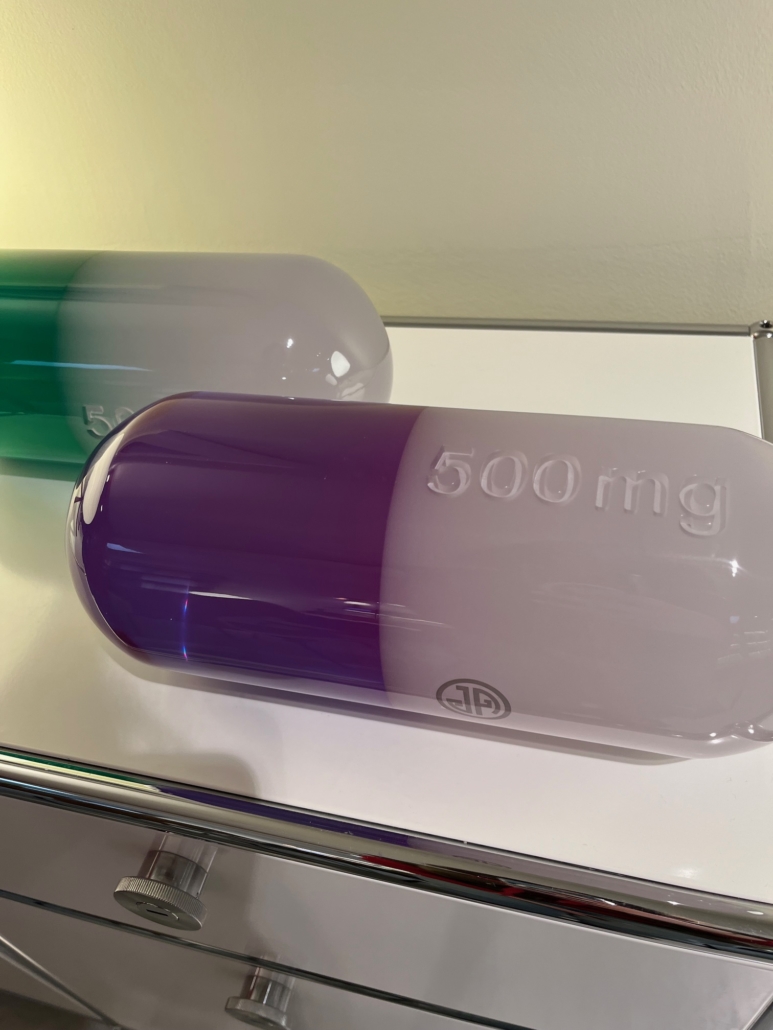 Obtenez votre prescription quotidienne de surréalisme avec nos hommages lustrés aux fabuleux produits pharmaceutiques. Fabriquées en acrylique solide dans une gamme de couleurs de pavot avec des dosages gravés au laser (petit : 150 mg, moyen : 300 mg) et différentes couleurs , non génériques. Utilisez-en un comme presse-papier – pour créer une installation artistique sur votre table à cocktail ?
