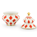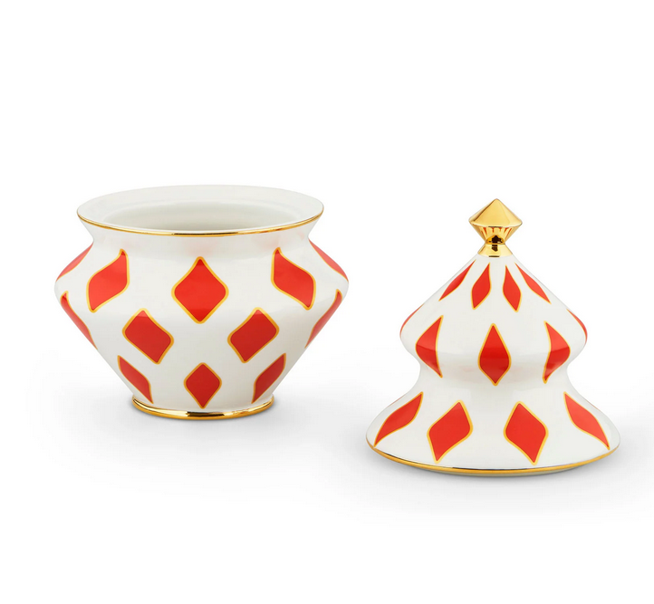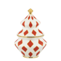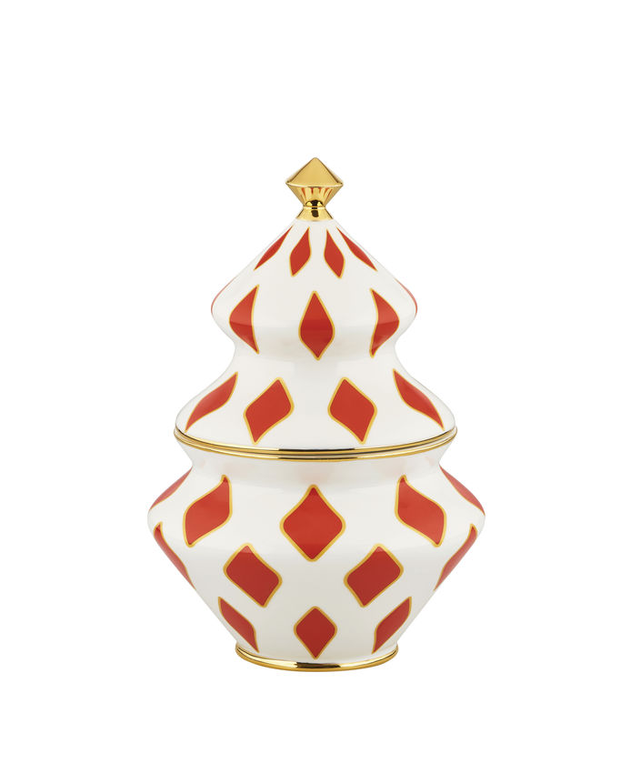 De manière subtile et non conventionnelle, Nika Zupanc a conçu un pot à bonbons poétique en réinterprétant la forme évocatrice du sapin de Noël, l’un des symboles les plus reconnaissables de Noël. Avec la même originalité, la designer utilise les couleurs classiques de blanc, rouge et or pour décorer l’objet de manière entièrement contemporaine. Inhabituel et extravagant, mais classique et plein de l’esprit de Noël, ce pot de la collection Delight combine des éléments ludiques avec une élégance raffinée.