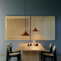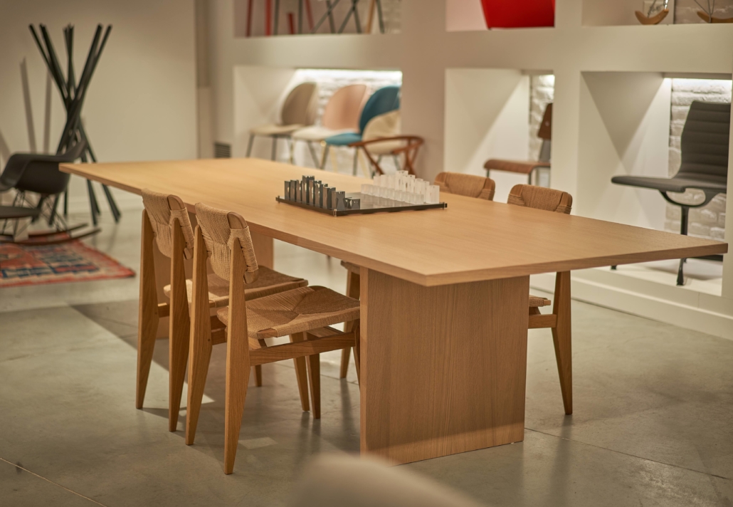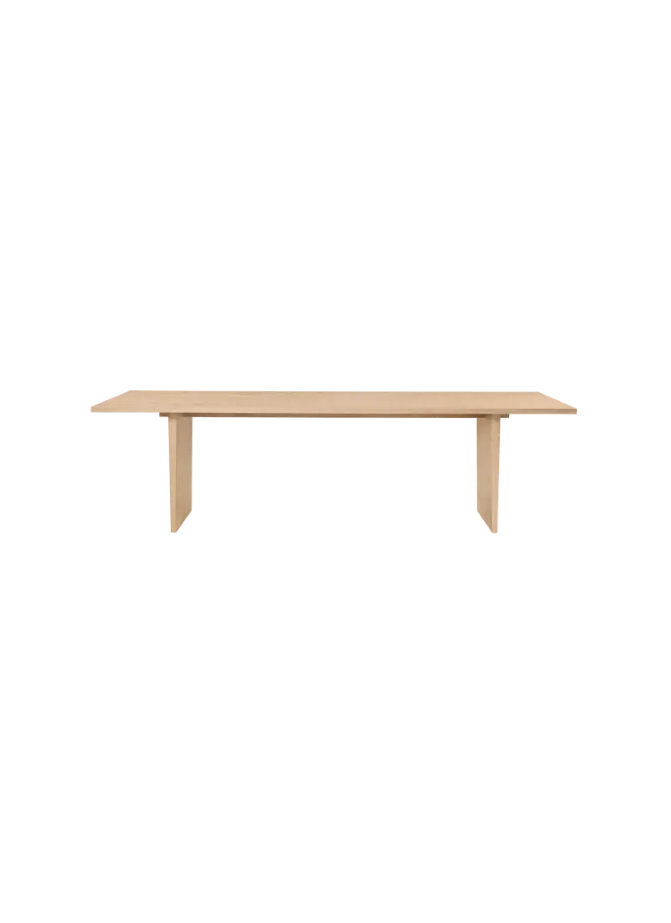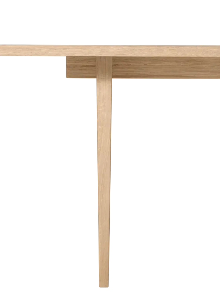 Les tables à manger privées partagent l’élégance, la symétrie et l’inspiration de la menuiserie traditionnelle japonaise avec le reste de la collection privée de Space Copenhagen. Les plateaux de table en bois plaqué, en frêne teinté noir et en chêne teinté clair, sont reliés aux deux pieds par une traverse en bois massif, ce qui donne une position robuste et une apparence raffinée.