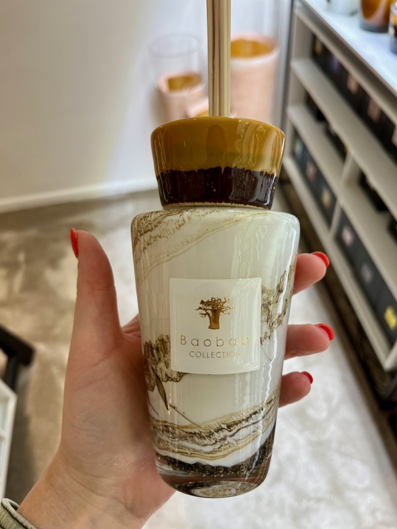 Ce coffret contient les bâtonnets, le totem Hauteur 15cm et la recharge de 250ml.