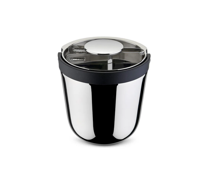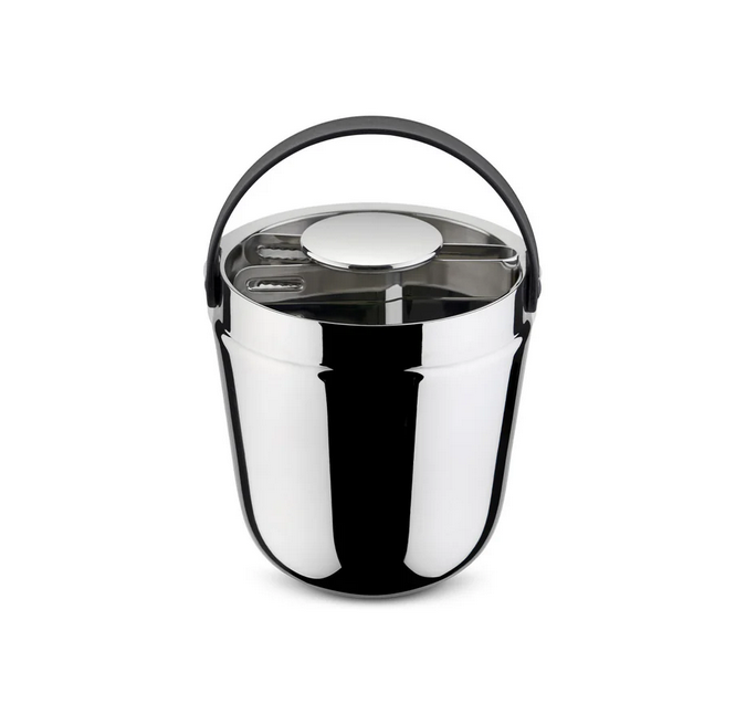 Seau à glace à double paroi en acier inoxydable 18/10. Poignée en résine thermoplastique. Pince à glace en acier inoxydable 18/10.