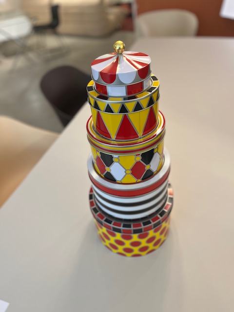 Les boîtes de rangement de la collection Circus d’Alessi sont conçues par Marcel Wanders. Ces boîtes s’assemblent les unes aux autres. Vous pouvez y ranger toutes sortes de choses comme des biscuits ou des bonbons. C’est aussi un beau cadeau !