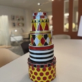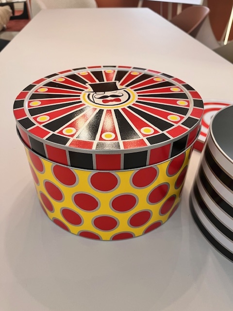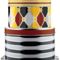 Mesdames et Messieurs, prenez place sous le chapiteau : Alessi fait son cirque ! Le célèbre Marcel Wanders s’est inspiré de la magie du cirque, avec ses personnages fascinants et ses couleurs intenses, pour dessiner une collection joyeuse, débordante d’humour et d’expressivité. Il en résulte une série d’objets pour la maison et la table caractérisée par des motifs géométriques répétés : rayures, triangles, losanges… Le tout dans un équilibre parfait de couleurs gaies qui s’alternent : blanc, noir, rouge, or et argent. Les différents éléments sont réalisés dans une superbe porcelaine anglaise ou bien fabriqués en acier inoxydable et fer blanc, dans l’usine de Crusinallo en Italie.