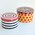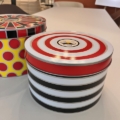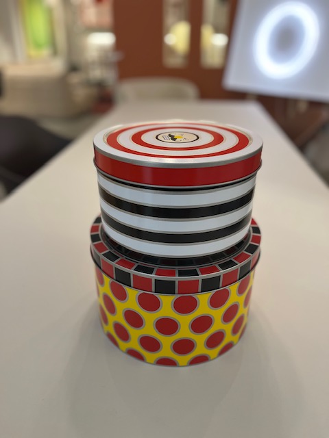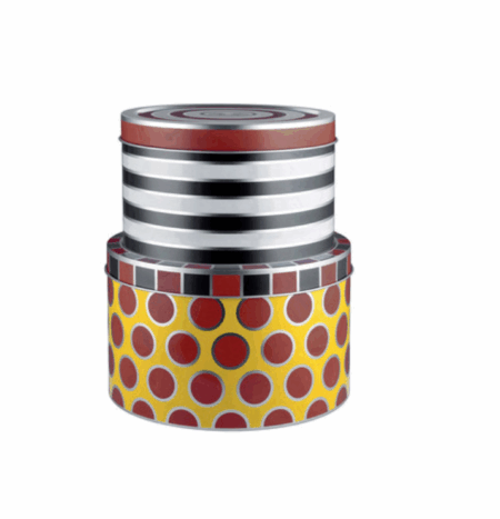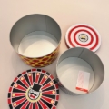 Ce set se compose de trois boîtes en fer blanc. Elles seront parfaites pour ranger vos petits objets ou bien pour stocker biscuits et bonbons dans la cuisine. Mention spéciale pour la plus petite boîte avec son couvercle en forme de chapiteau !