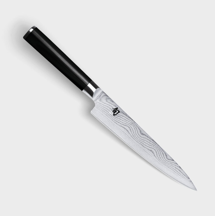 Un acier VG MAX d’une dureté de 61 (±1) HRC est l’élément principal de l’ensemble de la lame jusqu’au fil tranchant. Les 32 couches d’acier damassé donnent au couteau son anatomie inégalée, avec une lame stable, à la fois dure et tendre grâce aux deux composants. Les lames Shun Classic sont à émouture symétrique.