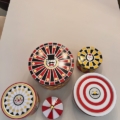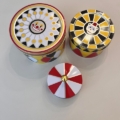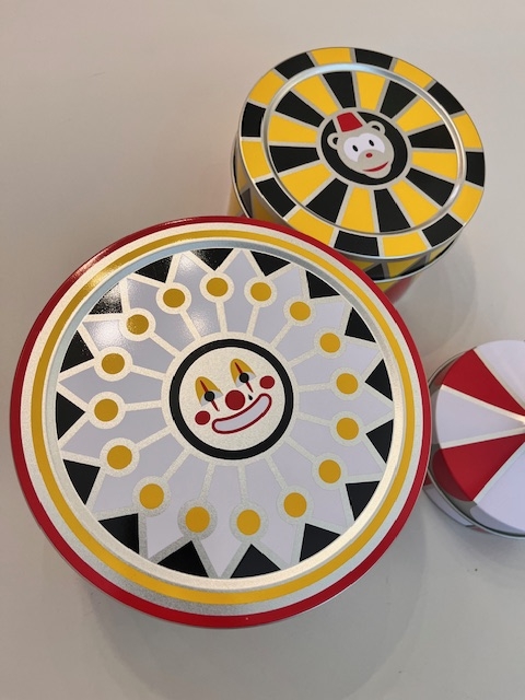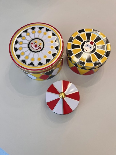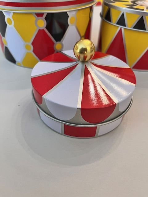 Ce set se compose de trois boîtes en fer blanc. Elles seront parfaites pour ranger vos petits objets ou bien pour stocker biscuits et bonbons dans la cuisine. Mention spéciale pour la plus petite boîte avec son couvercle en forme de chapiteau !