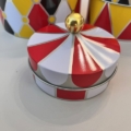 Mesdames et Messieurs, prenez place sous le chapiteau : Alessi fait son cirque ! Le célèbre Marcel Wanders s’est inspiré de la magie du cirque, avec ses personnages fascinants et ses couleurs intenses, pour dessiner une collection joyeuse, débordante d’humour et d’expressivité. Il en résulte une série d’objets pour la maison et la table caractérisée par des motifs géométriques répétés : rayures, triangles, losanges… Le tout dans un équilibre parfait de couleurs gaies qui s’alternent : blanc, noir, rouge, or et argent. Les différents éléments sont réalisés dans une superbe porcelaine anglaise ou bien fabriqués en acier inoxydable et fer blanc, dans l’usine de Crusinallo en Italie.