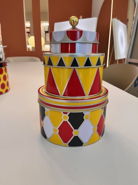Les boîtes de rangement de la collection Circus d’Alessi sont conçues par Marcel Wanders. Ces boîtes s’assemblent les unes aux autres. Vous pouvez y ranger toutes sortes de choses comme des biscuits ou des bonbons. C’est aussi un beau cadeau !